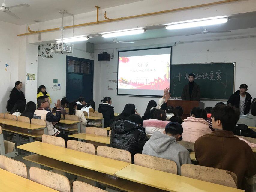 为深入学习贯彻党的十九大会议精神,2017年12月8日中午,会计系团总支在学院西区54教室开展了学习十九大应知应会知识竞赛。会议由纪检部管子文主持,党总支阳前林书记、学生管理科李娟科长和全体辅导员出席了此次比赛。