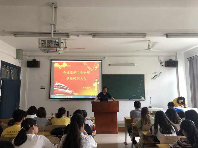 2019年6月6日上午,会计系学生党支部在西区51教室召开了预备党员转正大会。会议由会计系学生党支部组织委员孙捷主持,参加会议的有会计系学生党支部书记阳前林、会计系学生党支部组织委员李娟以及全体辅导员及其他学生党员。