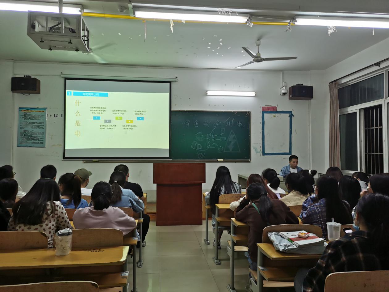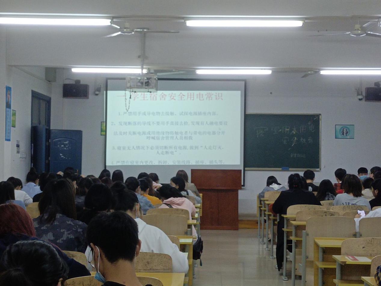 本次班会从三方面开展。首先,随着天气逐渐变冷,部分学生宿舍存在违规使用大功率电器,接线板等行为,这些行为会造成寝室断电和用电危险,存在严重的安全隐患,通过主题班会形式让学生们意识到违规用电的危险性和严重性,预防火灾事故的发生,就要从自身做起,切实增强自身的安全防范意识,做到规范用电,正确使用合格电器,做到“人走断电”。