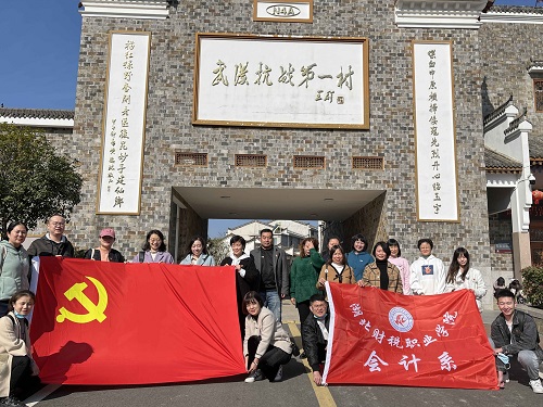 2021年11月26日,会计系党员教师和青年理论学习小组的教师及学生代表一行集中前往黄陂区姚家山开展党员红色教育活动。
