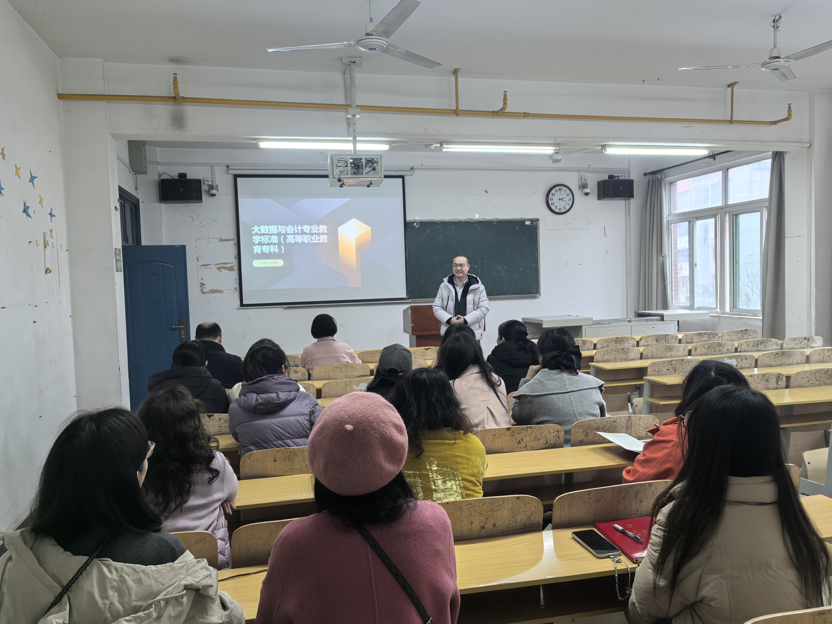 3月12日下午,大数据与会计专业教学标准学习会议于求知楼54教室顺利开展。新标准聚焦学生信息技术与数据处理能力培养,为专业核心课程教学内容明确规范,为人才培养方案修订指明方向。 会上,教研室主任详细解读了新标准的重点内容,强调了信息技术在会计专业教学中的重要性。教师们认真听取了解读,并就如何将新标准融入日常教学进行了深入讨论。大家一致认为,新标准不仅提升了学生的专业技能,还增强了其就业竞争力。 此次会议的成功举办,不仅加深了教师们对新标准的理解,更为提升专业教学质量、推动专业发展迈上新台阶奠定了坚实基础。教师们表示,将以新标准为指引,不断优化教学内容和方法,培养出更多适应时代需求的高素质会计人才。