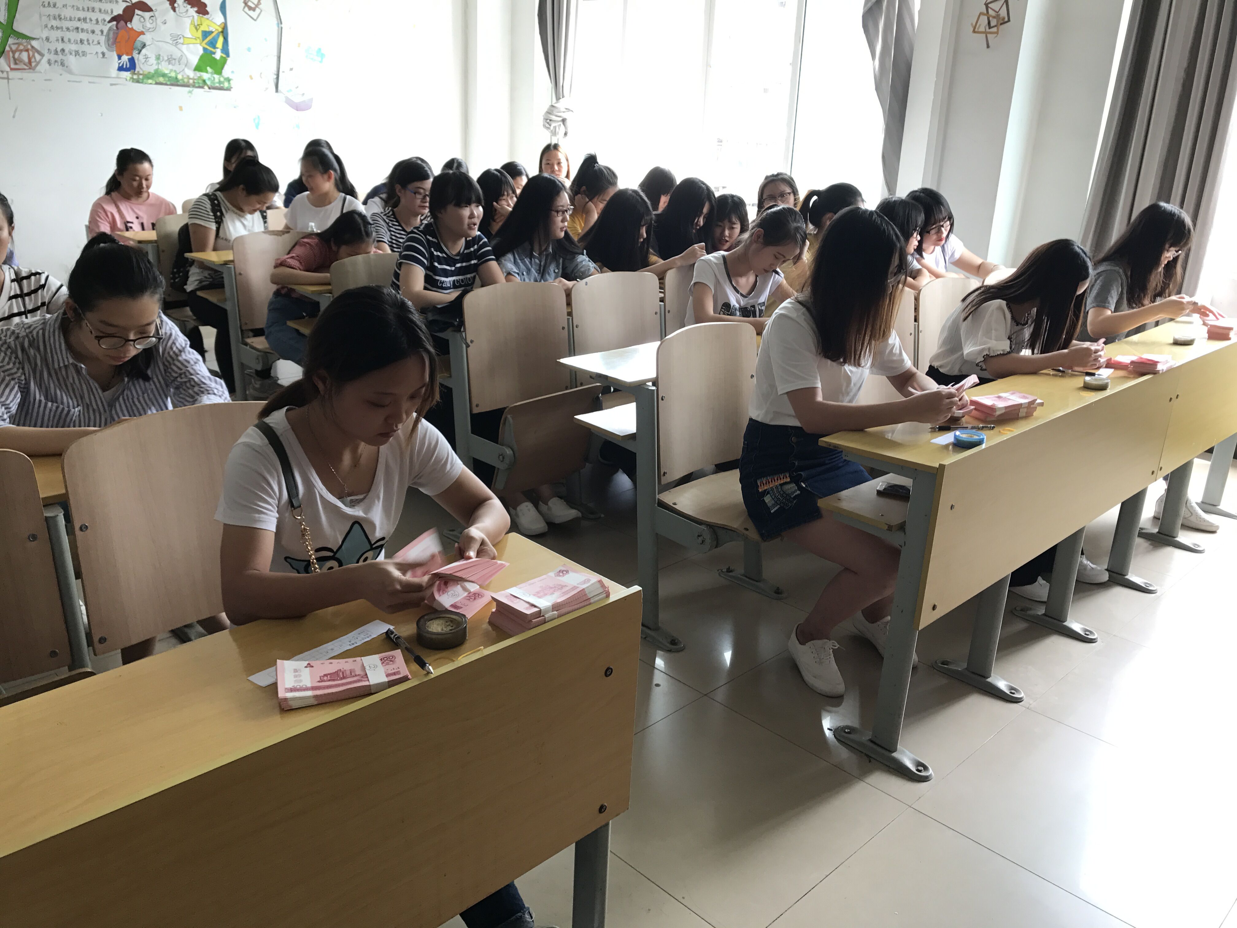 会计系所有专业的学生以极大的热情参与了此次大赛。例如参加点钞比赛的学生主动购买练功券在课余时间练习,提高自己的技能。经过一番勤学苦练各个同学以斗志昂扬的精神状态走进了比赛现场。在小键盘比赛现场,随着一声令下,整个实训机房立即响起一片噼里啪啦敲击键盘的声音,这声音清脆、紧密,昭示着学生精湛的技能。在点钞现场,学生的手指翻飞在一沓一沓的练功券上,不同的点钞方法在这里展示,速度与激情在这里演绎。会计分录与金融知识书面比赛现场,安静有序,知识在笔尖流淌。