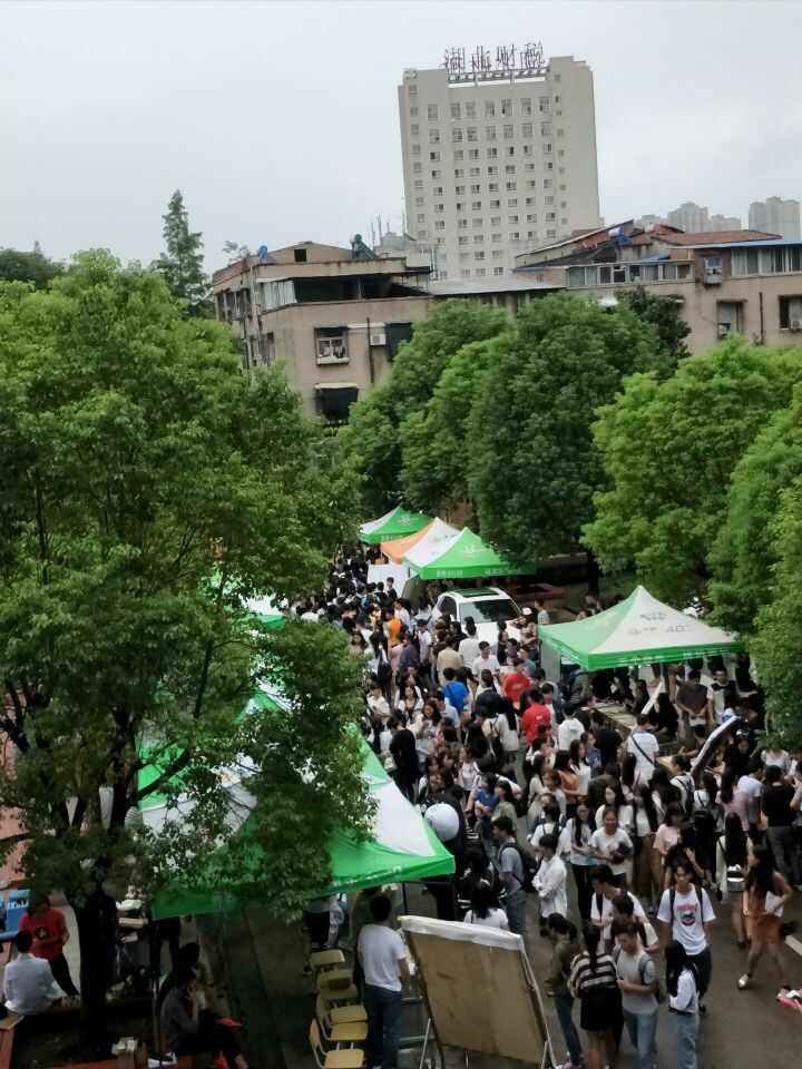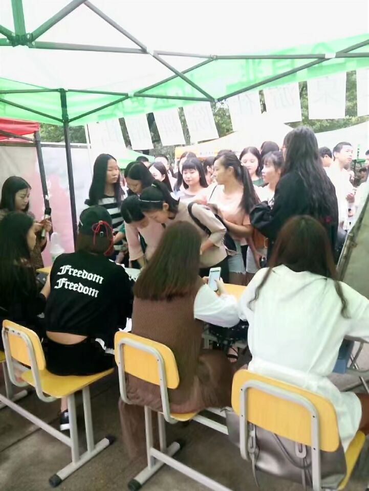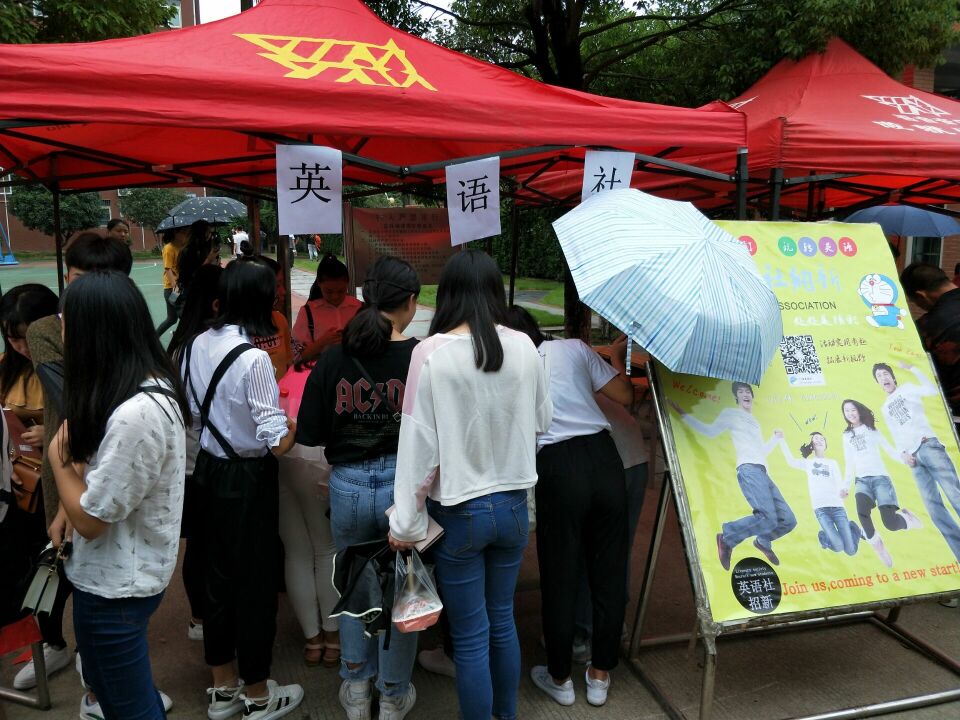 活动当天,天空下着小雨,但西区教学楼门口热闹非凡,每个社团都将自己最精彩、最独特一面,来迎接新生的咨询与报名。会计系的电竞社、知行社、吉他社、通讯社、盆栽社、英语社、桌游社、田径社、足球社、篮球社、行走艺术社、演讲与口才社、健美操社13个社团多名负责人早早来到指定地点做准备工作,社团联的干事们也来为各个社团加油打气以及帮忙各社团做准备工作。场地上摆满了各个社团的纳新板块及各具特色的物件。虽然今天天空不作美,但因为多彩帐篷的点缀,并没有阻止同学们的好奇与参与。各社团采用展板的方式介绍该社团的历史和辉煌,一下课同学们就都被吸引过来,细心地阅读展板上的内容,并琢磨着自己感兴趣和自己能够锻炼的社团。咨询人员主动上前解说和解答各种问题,并提供一些指导性的建议。