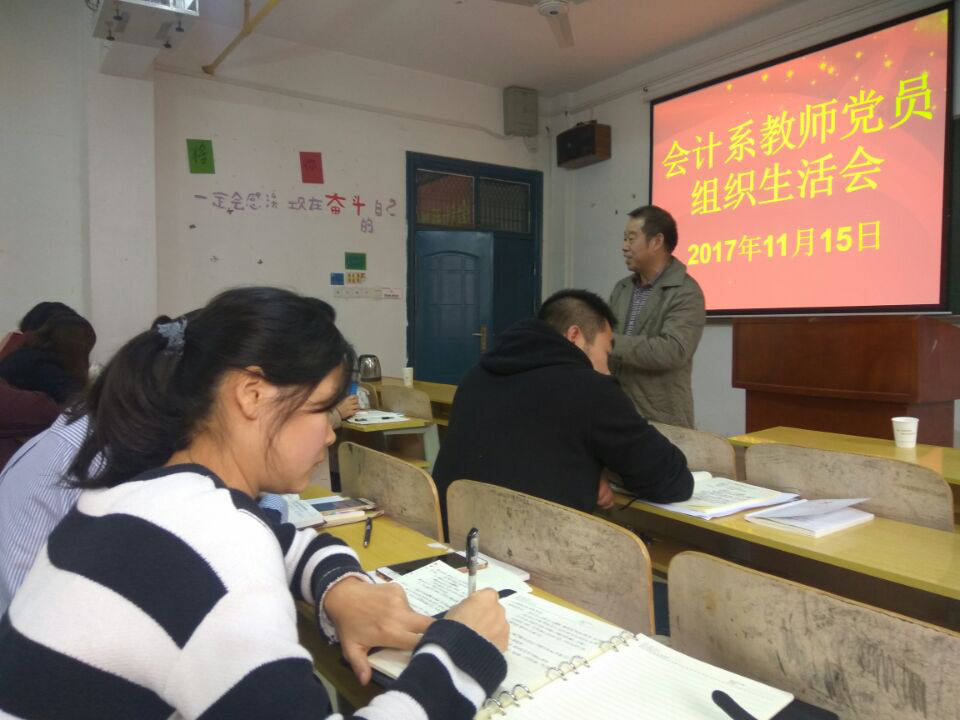 11月15日下午,会计系党支部在西区51教室召开会计系教师党员组织生活会,结合“以案铭记,严守底线”在全体党员中开展批评和自我批评。会议由会计系党支部书记阳前林主持,支部全体党员参加本次会议。